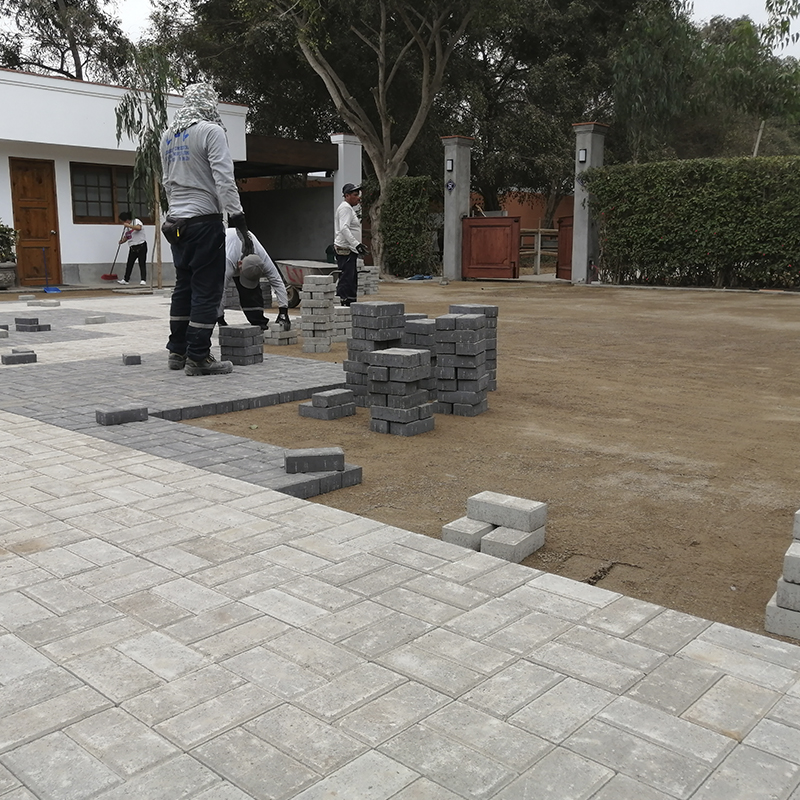 Cada adoquín se instaló con una meticulosa atención a la calidad y la precisión, asegurando que el resultado final no solo fuera estéticamente impactante, sino también resistente y duradero. El uso de adoquines de concreto no solo realzó la belleza de la entrada, sino que también mejoró la funcionalidad y la resistencia al tráfico peatonal y vehicular, convirtiendo la entrada en una primera impresión duradera y de alta calidad para los visitantes y residentes del recinto.